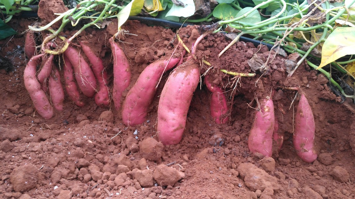 该品种在2014-2015年国家甘薯品种区域试验表现:鲜薯平均亩产2459.1kg,比对照种广薯87增产18.28%,增产达极显著水平,排名第1,有87.5%试点增产;干薯平均亩产701.70kg,比对照种广薯87增产19.30%,增产达极显著水平,排第1位,有87.5%试点增产。淀粉平均亩产459.59kg,比对照种广薯87增产20.59%,增产达极显著水平,排名第一,有87.5%试点增产。干物率平均为29.00%,比对照高0.50个百分点,淀粉率18.87%,比对照高0.44个百分点。