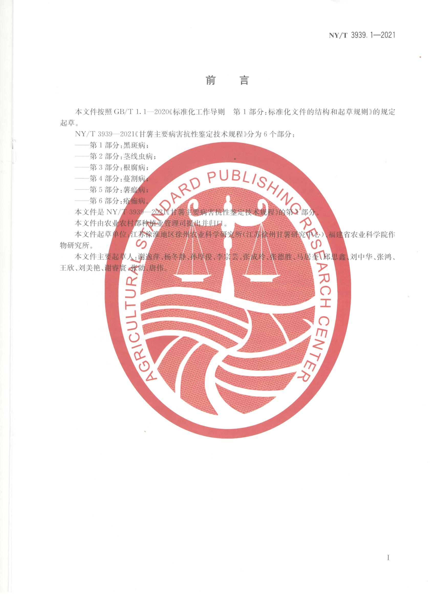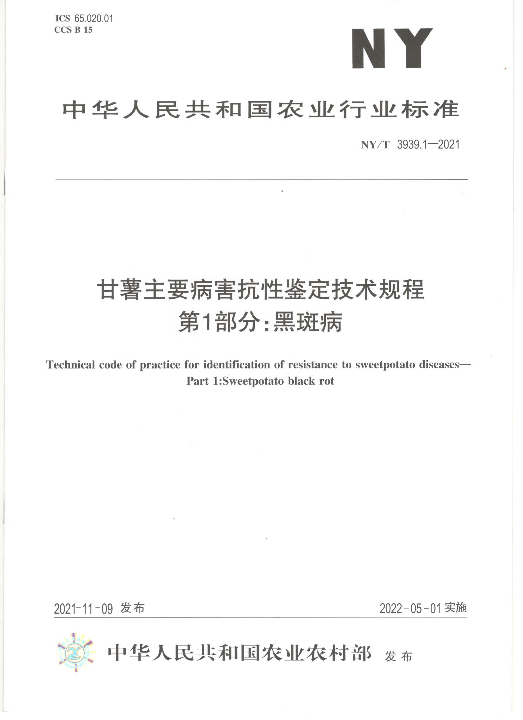 甘薯主要病害抗性鉴定技术规程 第1部分:黑斑病-国标