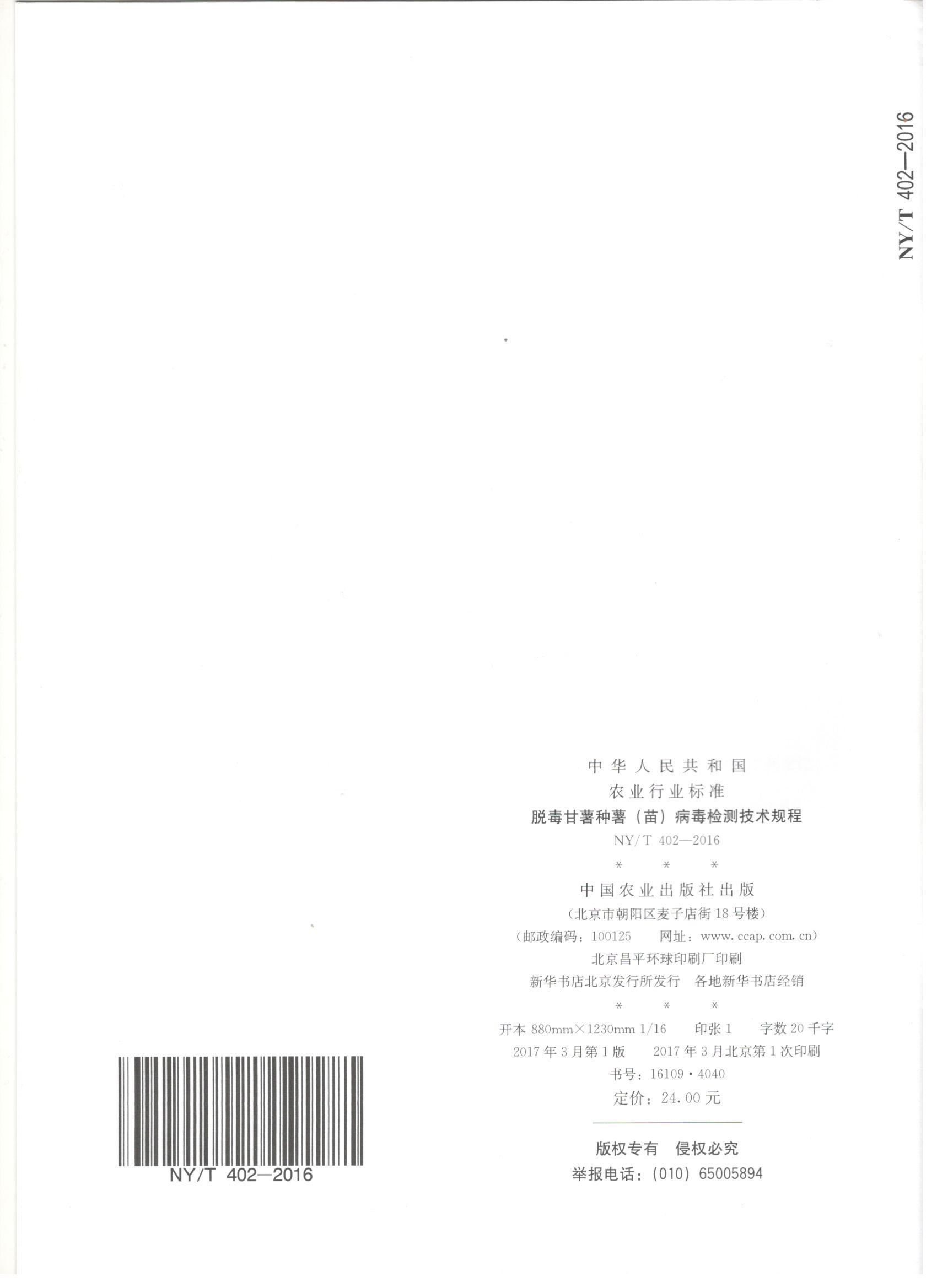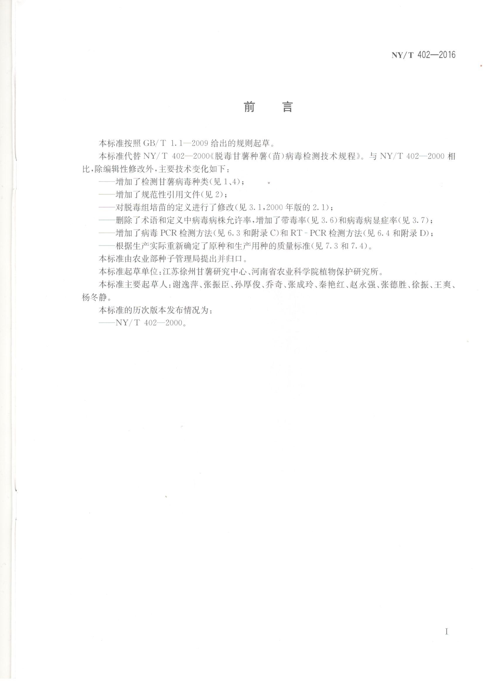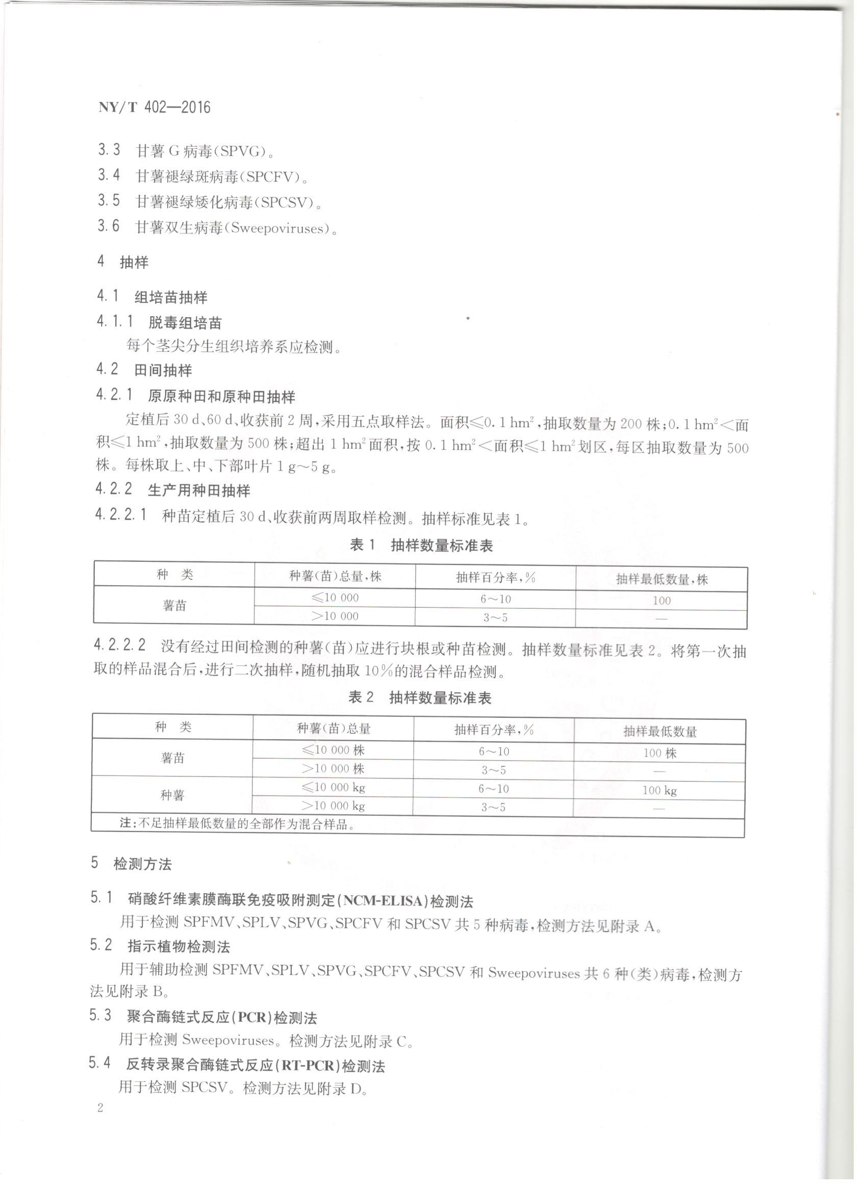 脱毒甘薯种薯(苗)病毒检测技术规程-国标