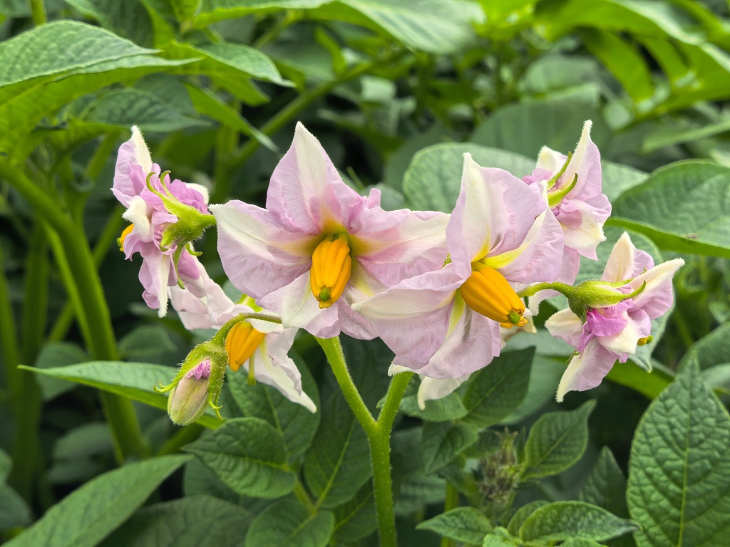 克新1号是中熟品种,生育期100天左右。株型直立,分枝数量中等,茎粗壮,叶片肥大,花淡紫色。块茎椭圆形,大而整齐,白皮白肉,表皮光滑,块芽眼中等深。块茎休眠期长,耐贮藏。不抗晚疫病,对环腐病免疫,抗马铃薯X病毒和马铃薯Y病毒,高抗马铃薯卷叶病。根系发达、抗旱性极强是其主要特点。